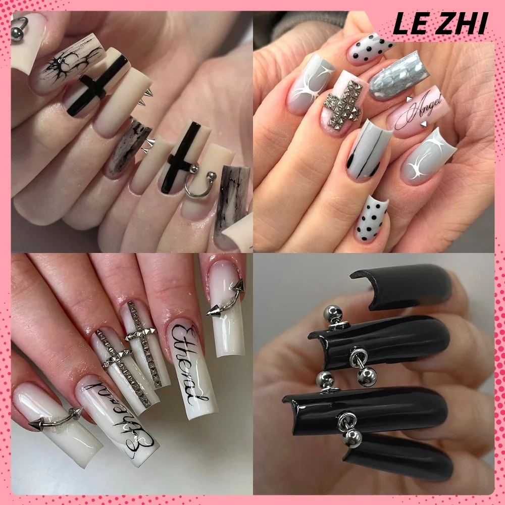 Y2K Spice Girls 10Pcs Handmade Gothic Punk Press On Nails Art Square Nude Color Metal Letter Design False Nails Customized Gifts