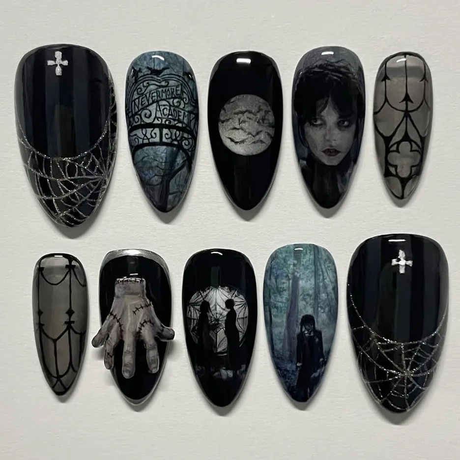 Handmade Halloween Press on Nails Long Gothic Y2k Metallic Fake Nails Artifical Acrylic Fake Nails Manicure Desired Life Store