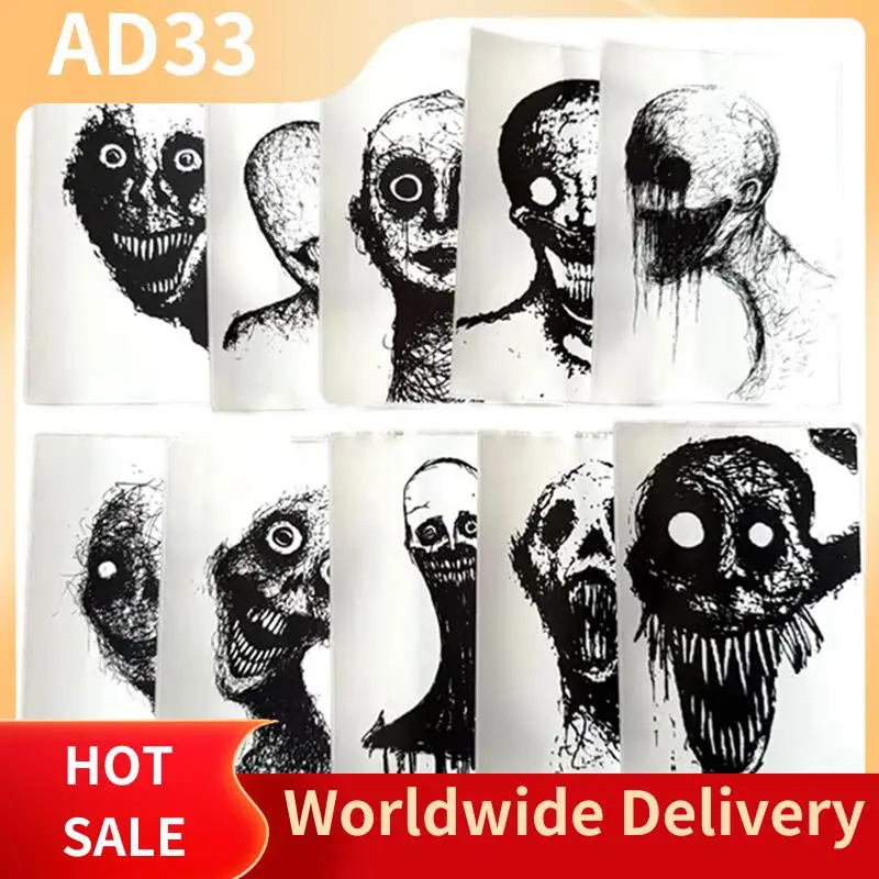 ABBP-Horrifying Sketch Stickers,Halloween Horror Ghost Stickers 10-Pack For Laptops Journals Water Bottles Goths Spooky