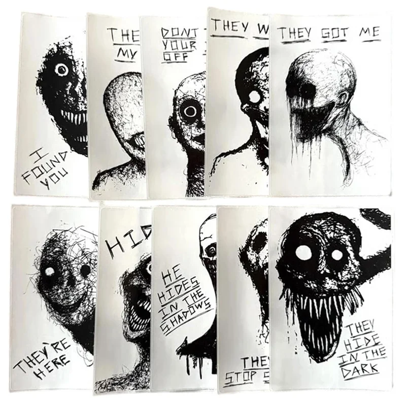OLTRE-Horrifying Sketch Stickers 10-Pack Halloween Horror Ghost Stickers, Goth Spooky For Laptops Journals Water Bottles
