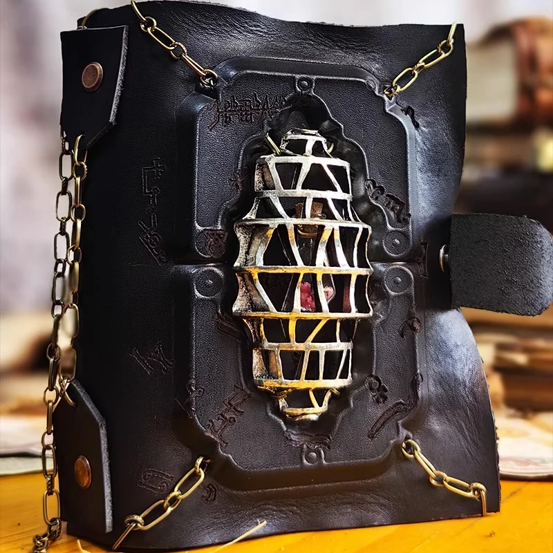 Halloween Cosplay Metal Chain Gothic Style Theme Magic Book Journal Vintage Notepad Handmade Cowhide Leather Diary Notebook