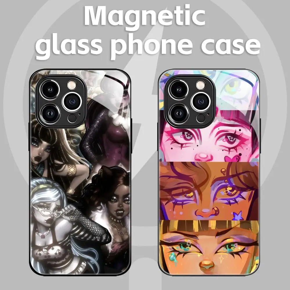 M-MonsterS Cartoon H-HighS Phone Case For iPhone17 16 15 14 13 12 11 X XR XS 8 Plus Mini Pro Max Glass Magnetic Case