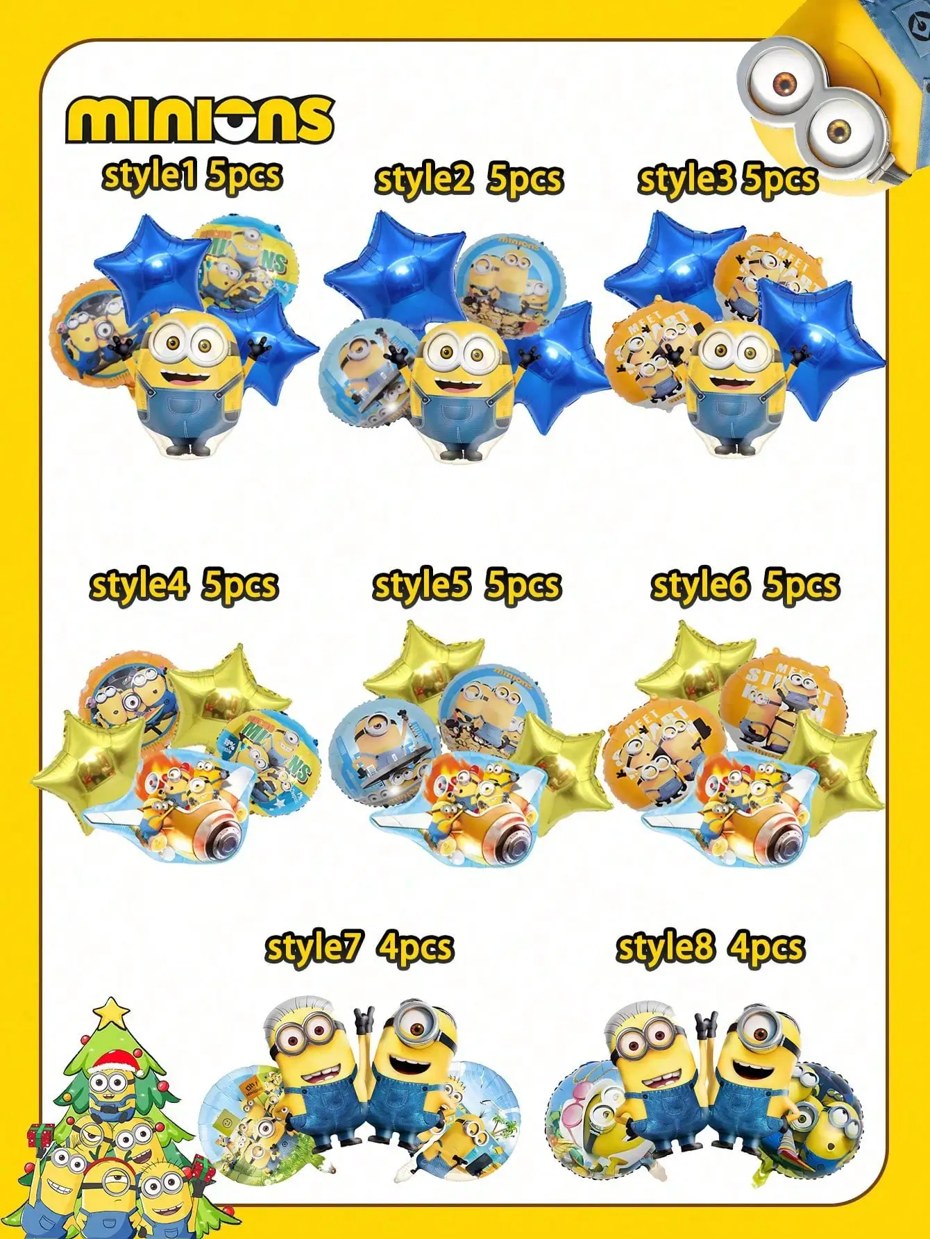 4/5 PCS MINISO Minions theme balloon birthday party, party scene decoration, decorated balloons, the best holiday gift for good