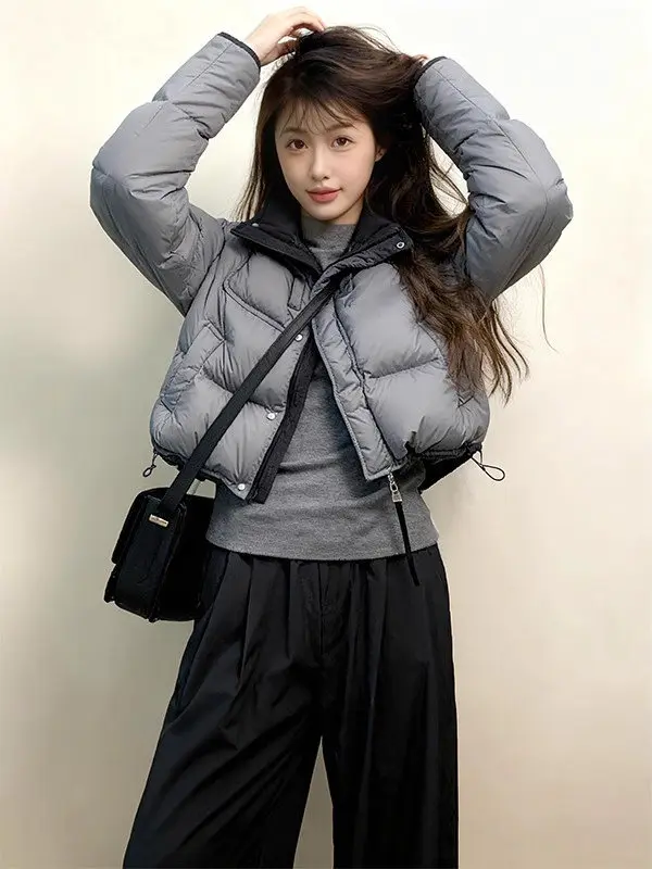 Winter Women Clothes Cropped Jackets Parkas Warm Stand Collar Cold Coat Zipper Puffer Jacket Korean Fashion Cotton-padded Jacket