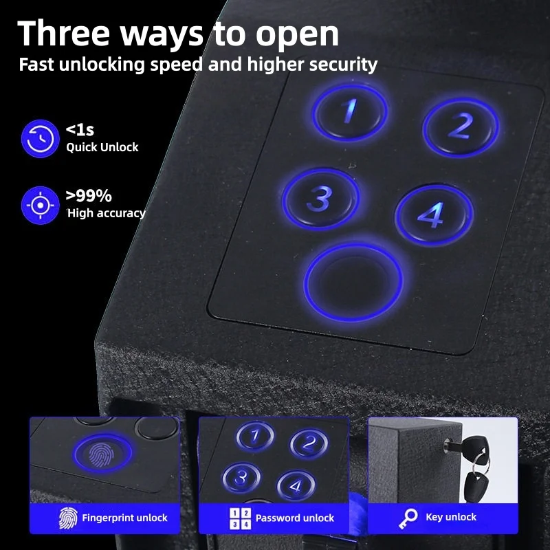 High-security Anti-Theft Fingerprint Password Safe Box with Screen Display, Shockproof Vehicle-mounted Gun Safe for Valuables