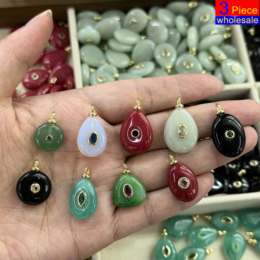 3pcs Trendy Natural Stone Charms For Jewelry Making Supplies Gold Color Zircon Diy Earrings Bracelet Necklace Keychain Wholesale