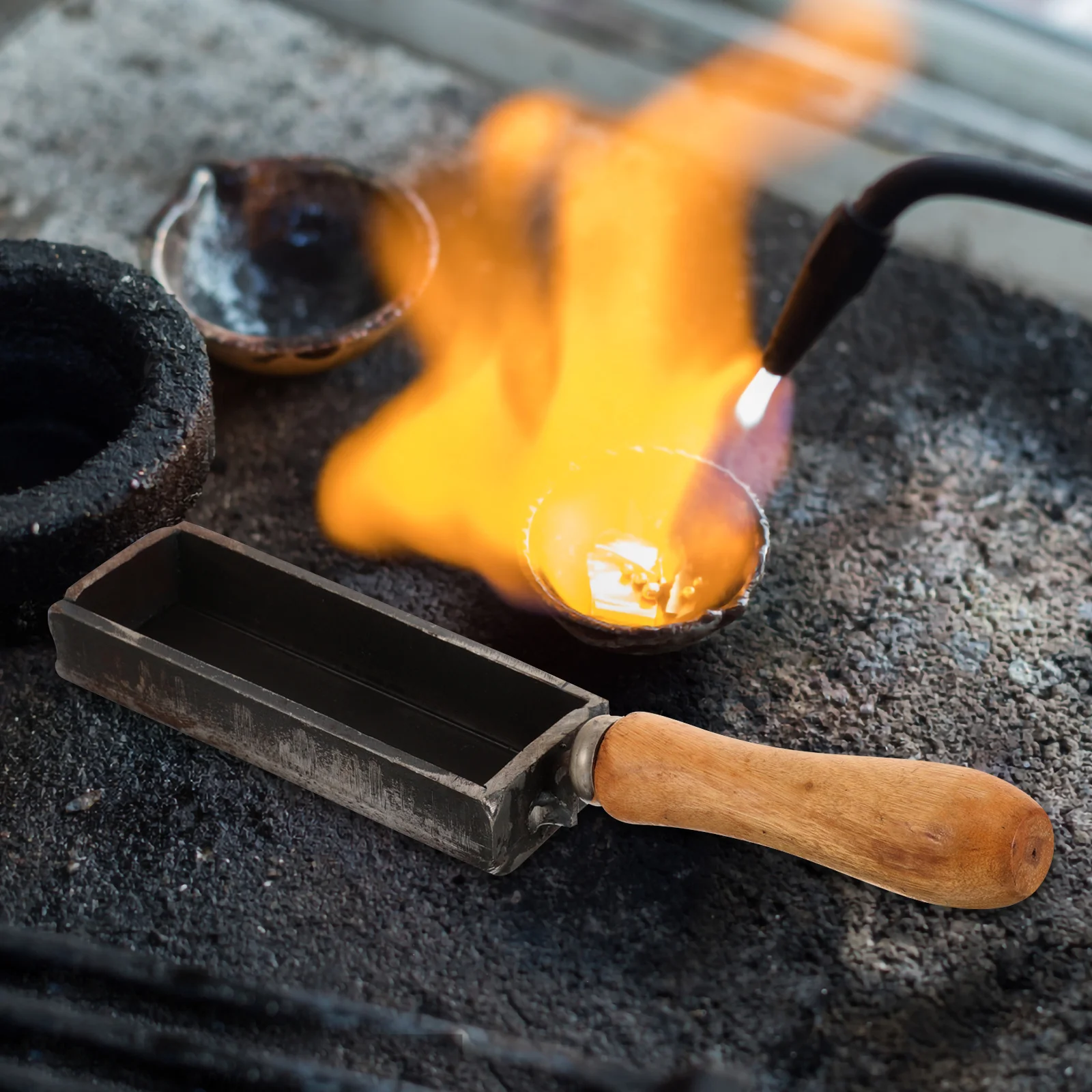 Oil Trough Mold Strip Shape Wooden Handle Iron Melting Casting Tool For Gold Silver Copper Ingot Refining Diy Jewelry Making