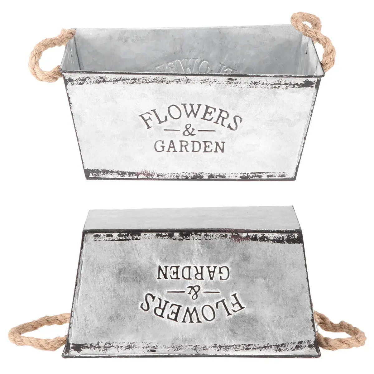 Flower Bucket Iron Hemp Rope Durable Handle Plant Storage Decorative Bucket Simple Style Silver Small Size Garden Flower