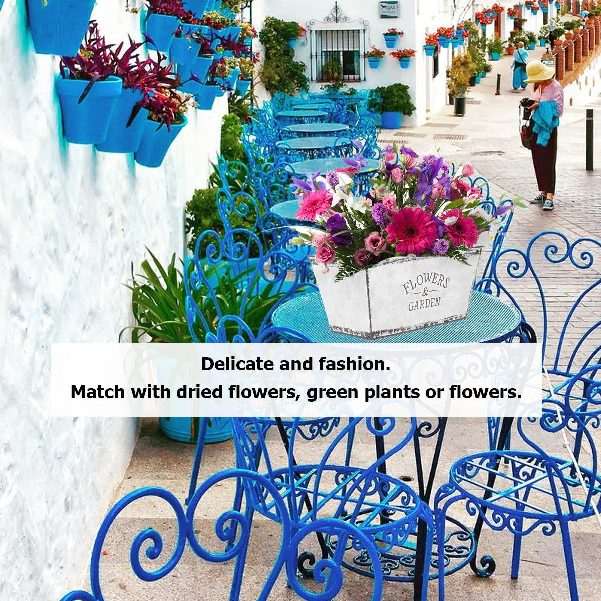 Small Size Flower Bucket Iron and Rope Construction Sturdy Handle Ideal for Dried Flowers Arrangements Silver Finish