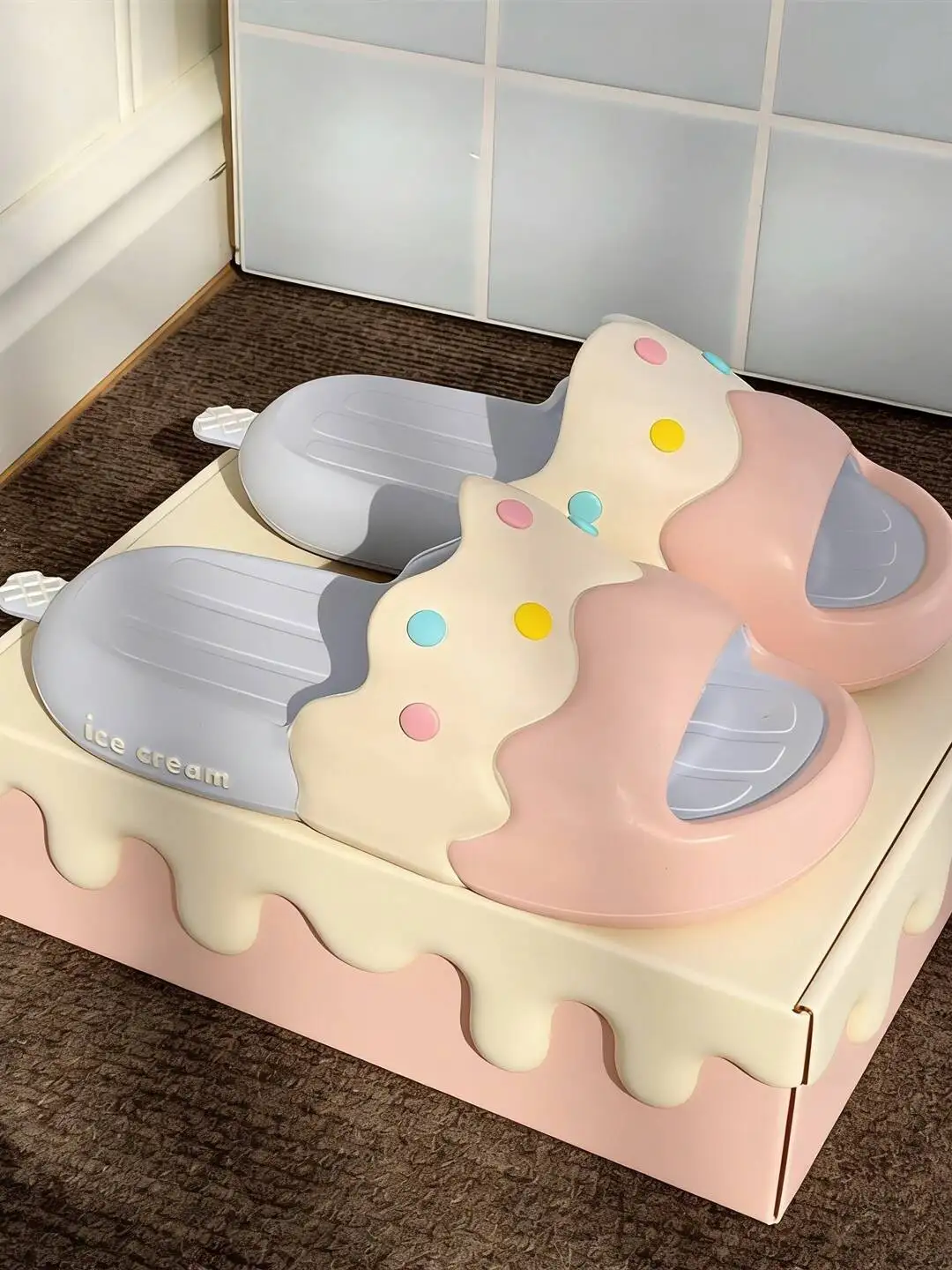 Women's Summer Slipper Cute Ice Pop Slides Outdoor & Home Non-slip EVA Fun Ice Cream Beach Slippers