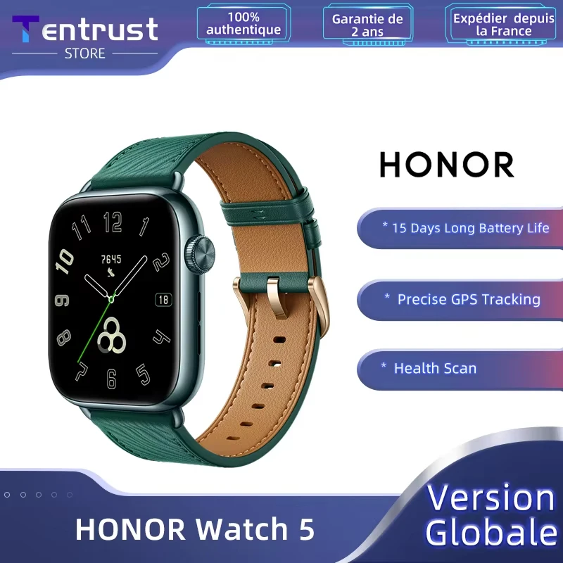 Global Version HONOR Watch 5 Smartwatch Precise GPS Tracking Quick Health Scan 1.85-inch Large Display GPS Supported IP68
