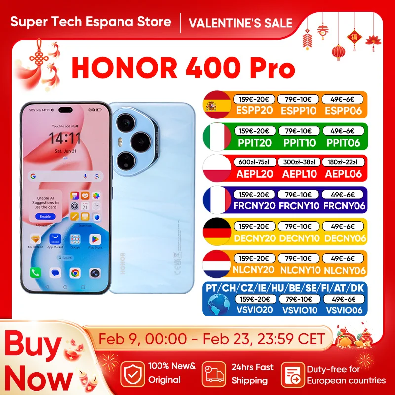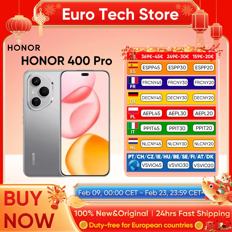 Global Version HONOR 400 Pro 5G Smartphone 6.7″ AMOLED Snapdragon 8 Gen 3 MagicOS 9.0 200MP AI Ultra HD Lens 5300mAh 100W eSIM