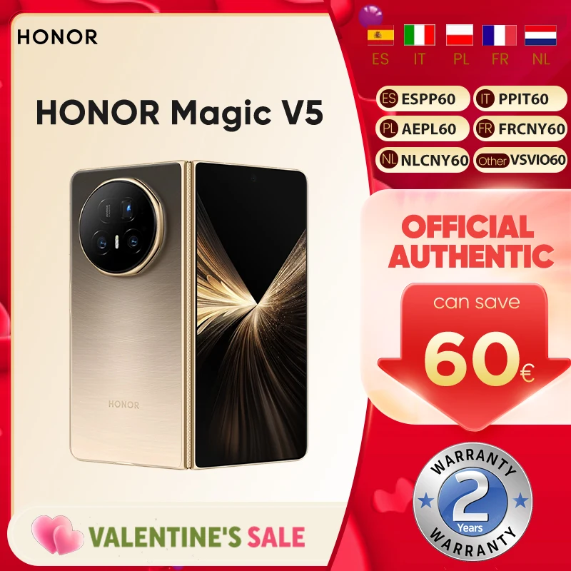 New HONOR Magic V5 Global Version Original 5G Smartphone7.95" Dual HDR OLED Display Snapdragon 8 Elite 5820mAh 66W SuperCharge