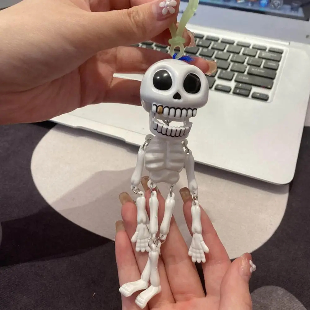 White Spooky Pull String Skull Head Keyring Plastic Gifts Horror Skeleton Charm Pull String Skull Key Rings Bags Accessories