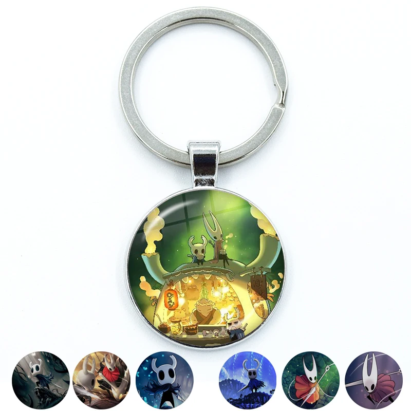 Horror Anime Hollow Knight Cartoon Keychain Glass Cabochon KeyRing Bag Car Key Chain Ring Holder Charms Jewelry Gifts