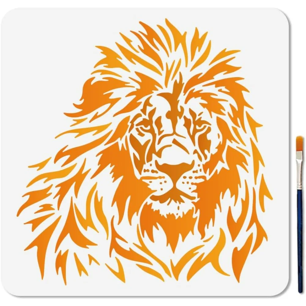 Lion Head Stencils Wild Animal Stencils for Templates with Paint Brush for Shirt Wood Wall Home Decoration