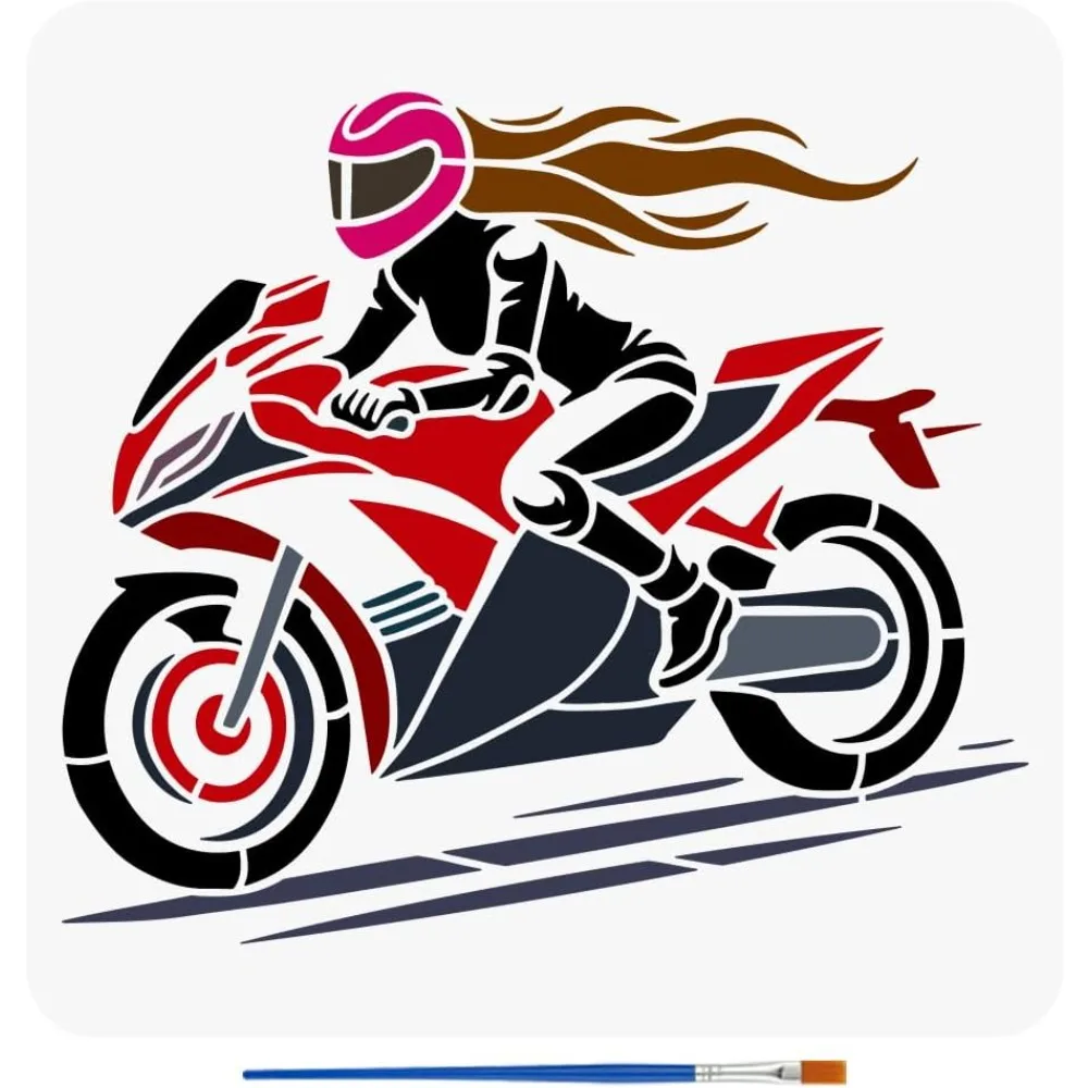 Motorcycle Female Rider Stencil - Large 11.8x11.8inch Reusable Stencil - DIY Craft Template - Motorcycle Theme Stencils for Home