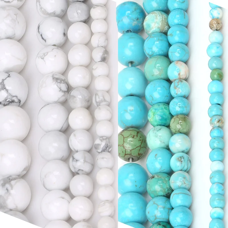 Pick Size 4 6 8 10mm Natural Stone Beads Blue Turquoises White Howlite Round Loose Beads For Bracelet Jewelry Making