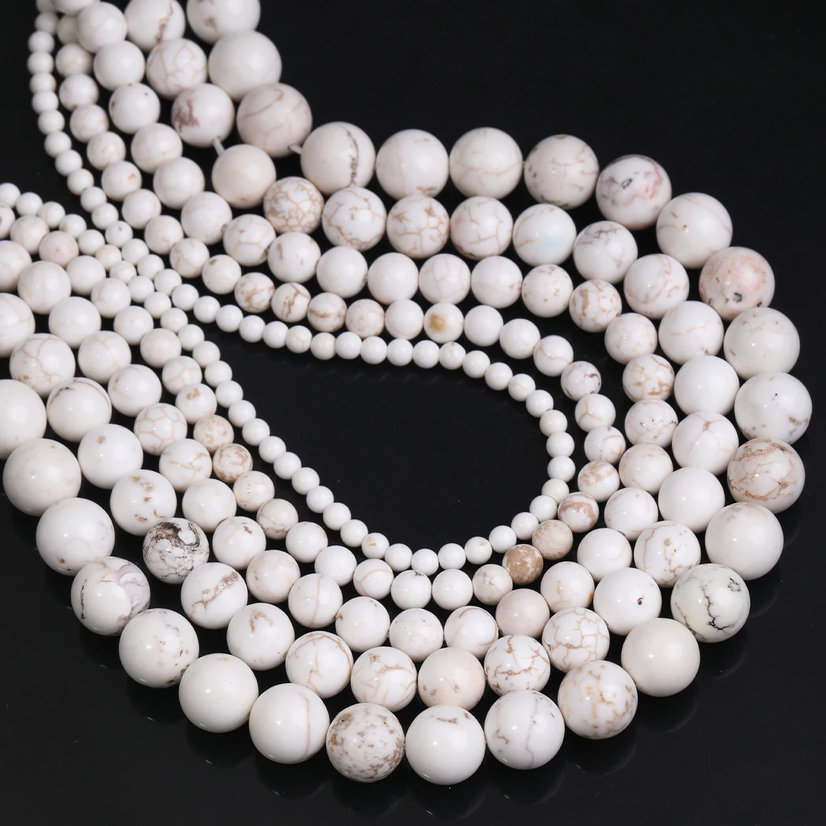4 6 8 10 MM Natural Stone White Howlite Turquoise Round Loose Beads Strand Pick Size For Jewelry DIY Accessories wholesale