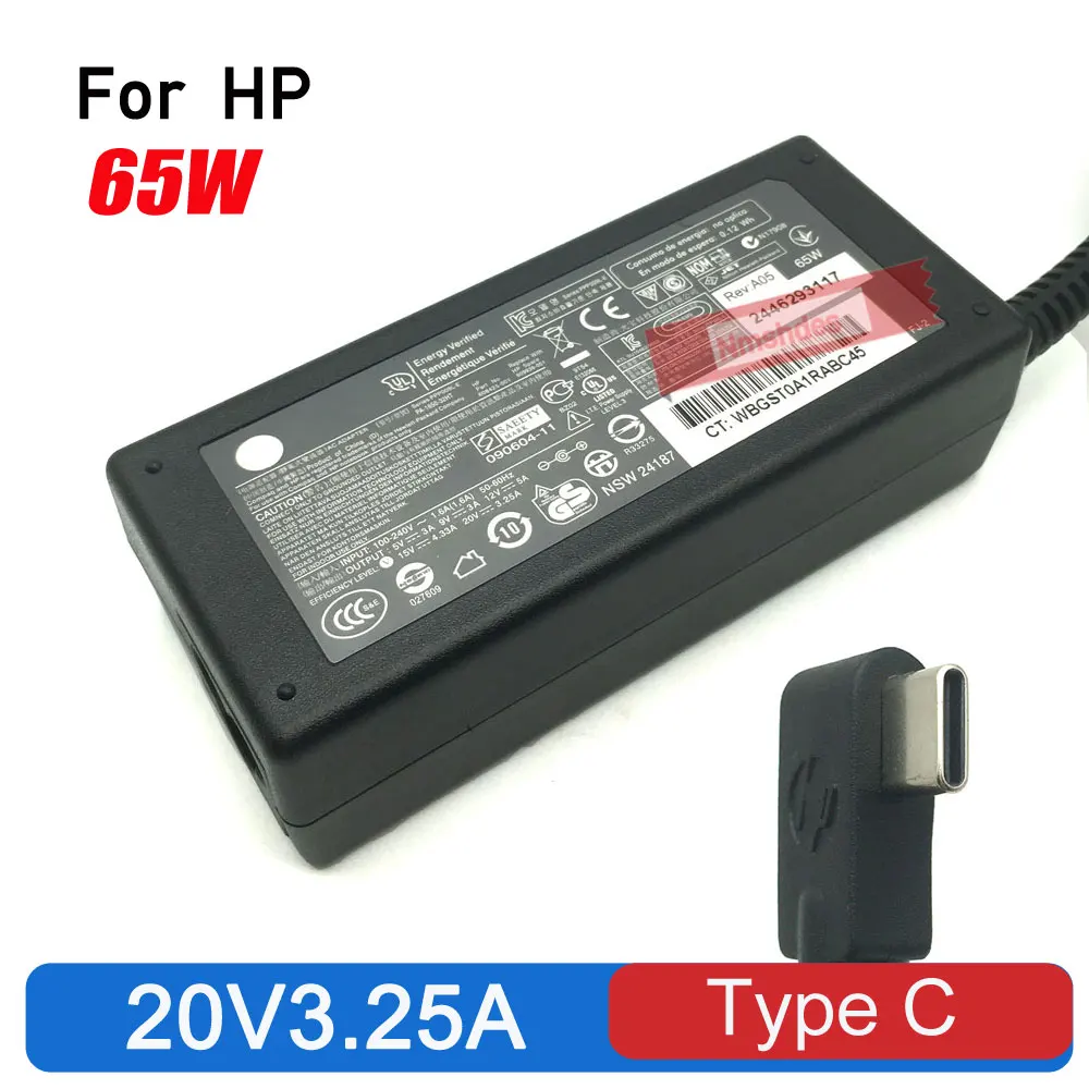 Original 20V 3.25A 65W Type C Charger Laptop For HP Envy X2 12-E000 13-G000 12-g018nr 12-e091ms Chromebook USB C Ac Adapter Powe