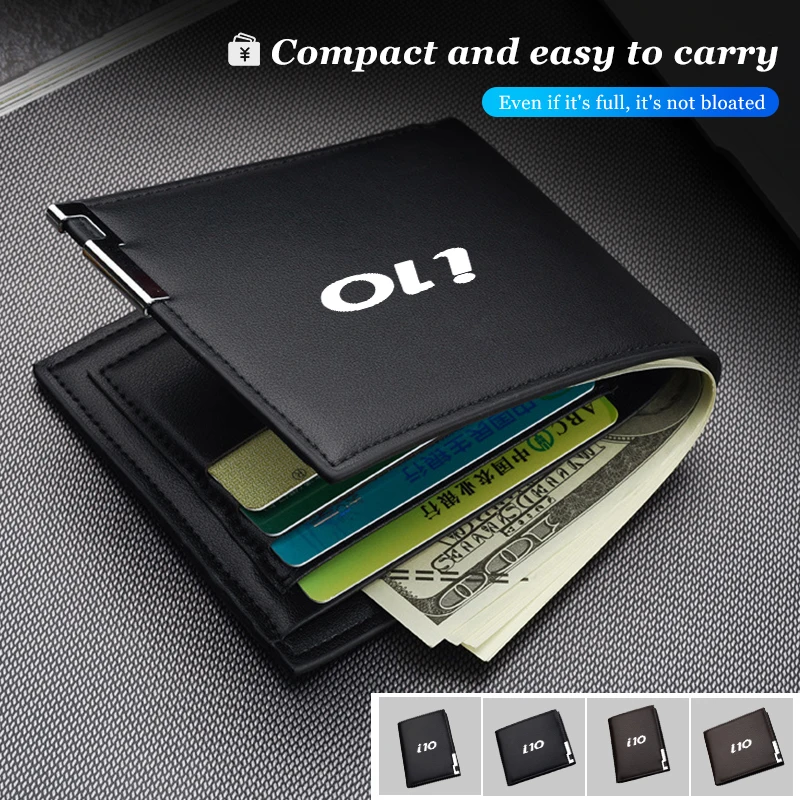 Long Wallets Men Business Thin Soft Leather Wallet Card Holder Coin Purse For Hyundai i10 I10 N Line 2008 2009 2010 2011 2012