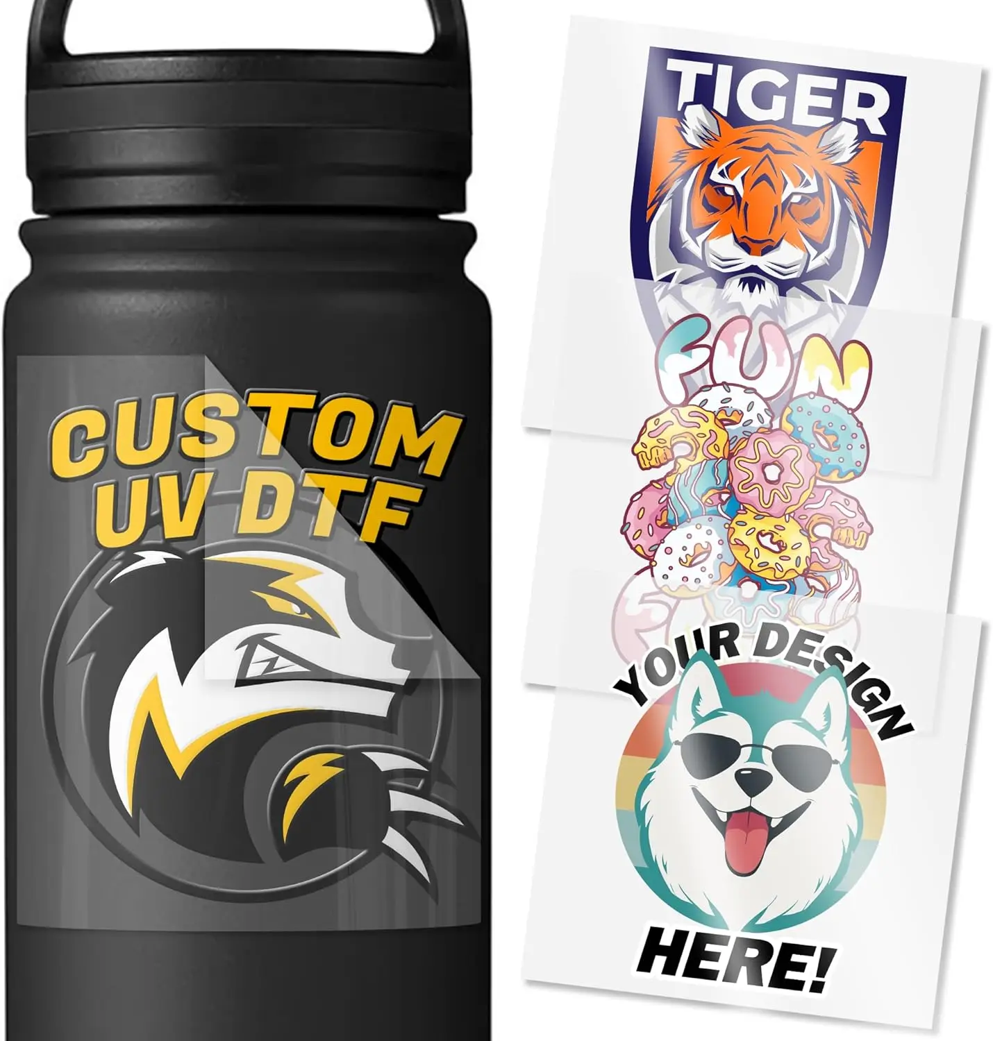 VulgrCo Custom UV Stickers – Personalized Transfer Stickers with Logo Text or Image for Bottles Mugs Laptops Phones & Gifts