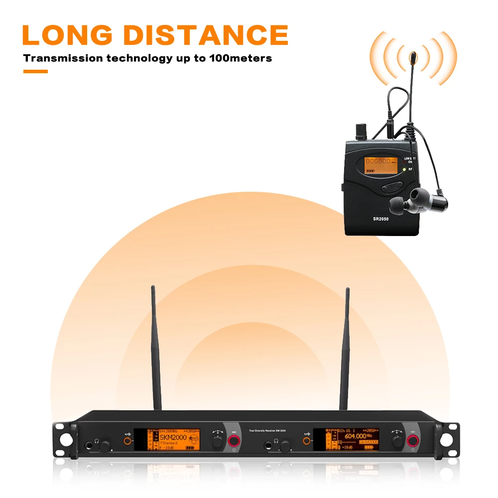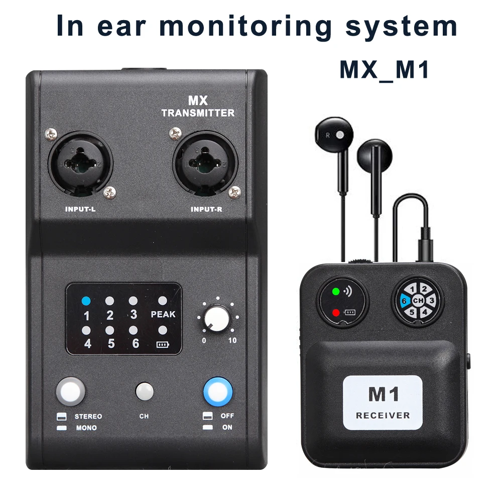 Professional wireless in-ear monitoring system, single channel, suitable for singers, bands, rehearsals and stage performances.