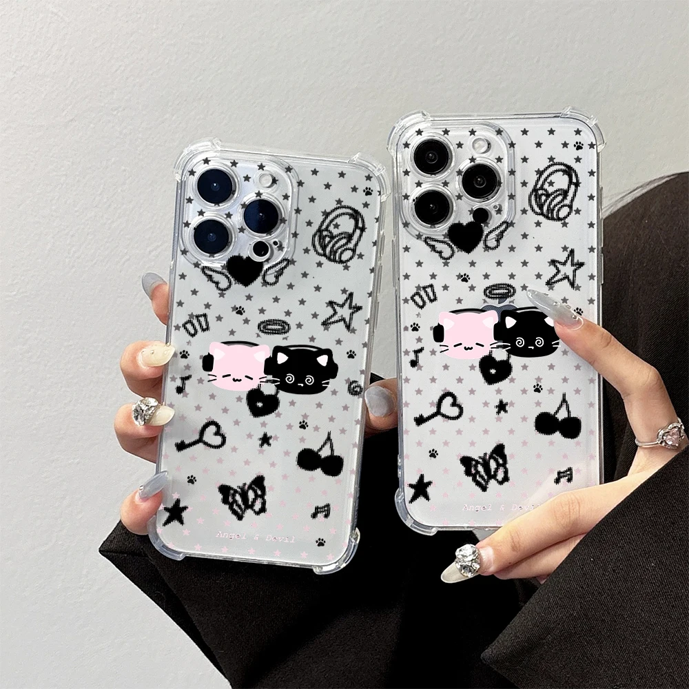Lovely Cartoon Cat Silicone Couple Phone Case for IPhone 17 Air 16 16E 15 14 13 12 11 Pro Max X XS X S Max XR SE 2020 SE4 7 8