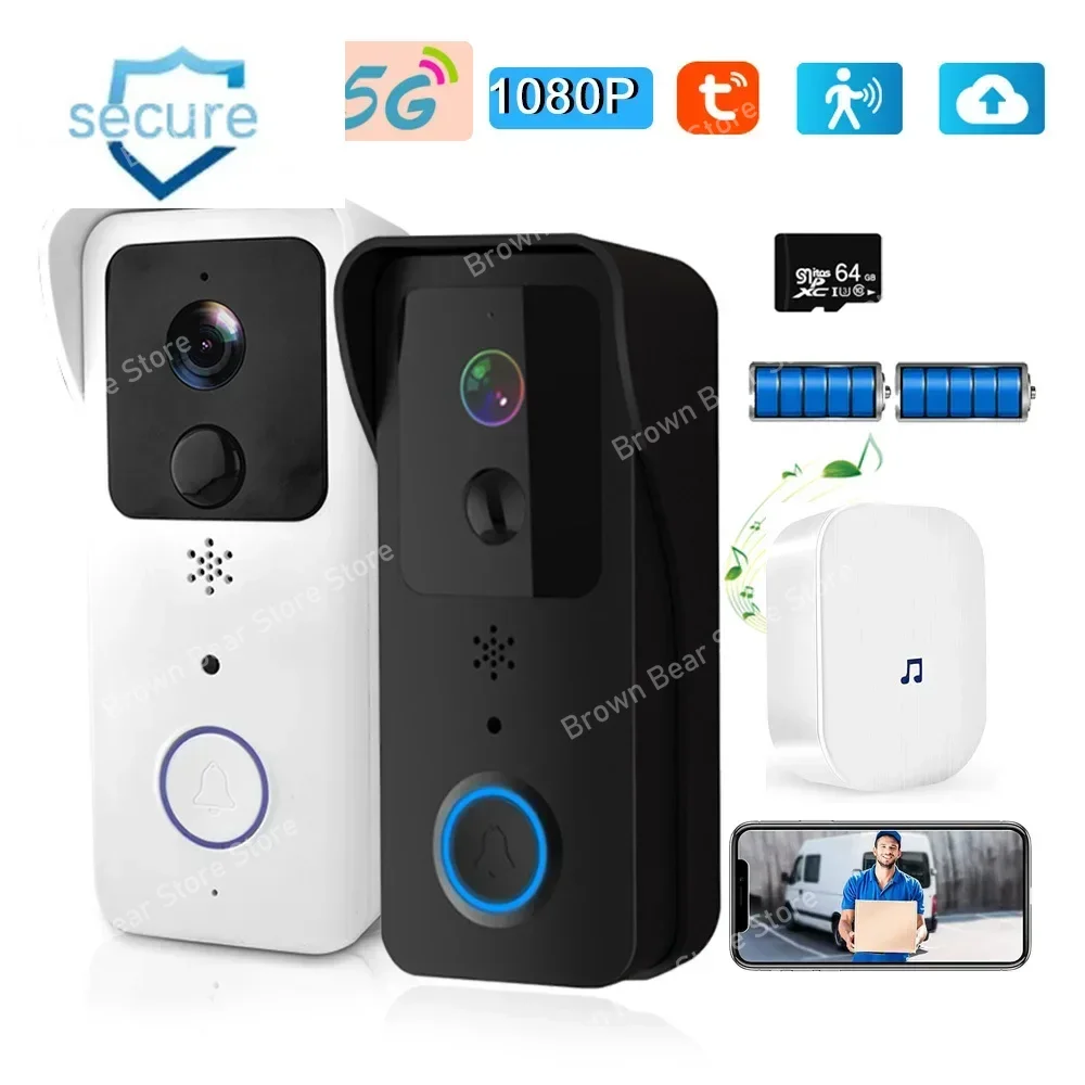 1080P Video Doorbell 5G 2.4G WiFi Wireless Door Bell Night Vision Tuya Smart APP PIR Recording AC/DC Power Ring Camera Bell