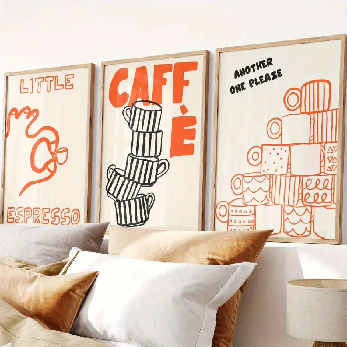 1/3pcs Italian Coffee Canvas Poster Minimalist Orange and Black Cafe Kitchen Wall Art Prints for Modern Living Room Home Decor