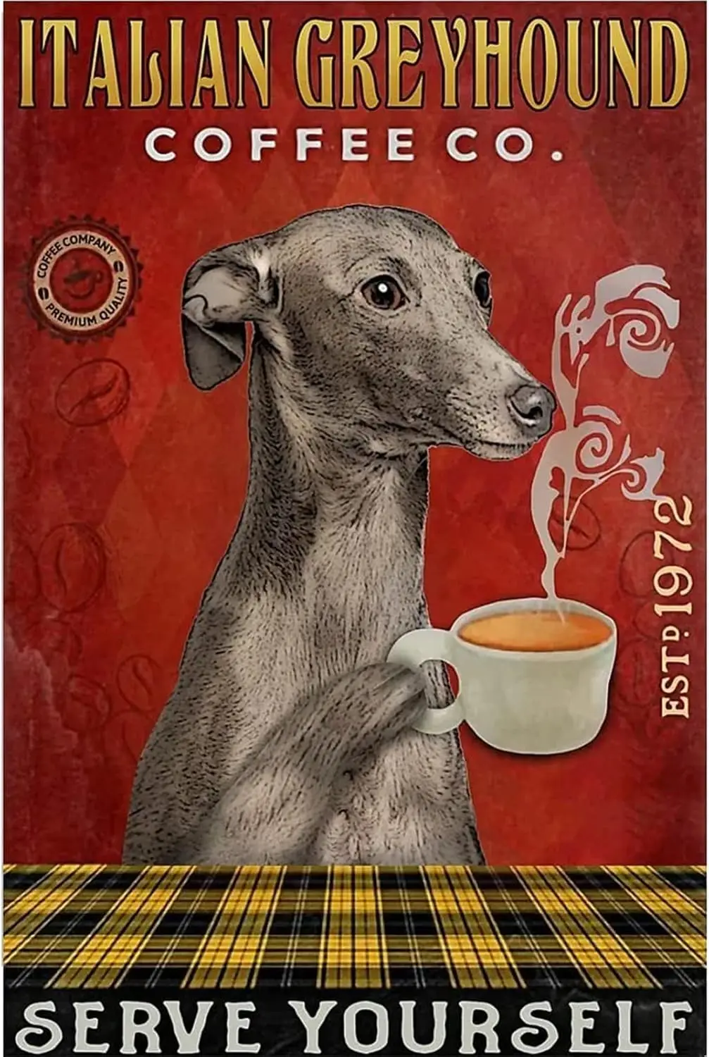 Metal Sign Coffee Company Italian Greyhound Vintage Funny Retro Aluminum Tin for Home Farm Garden Bar Bathroom Kitchen