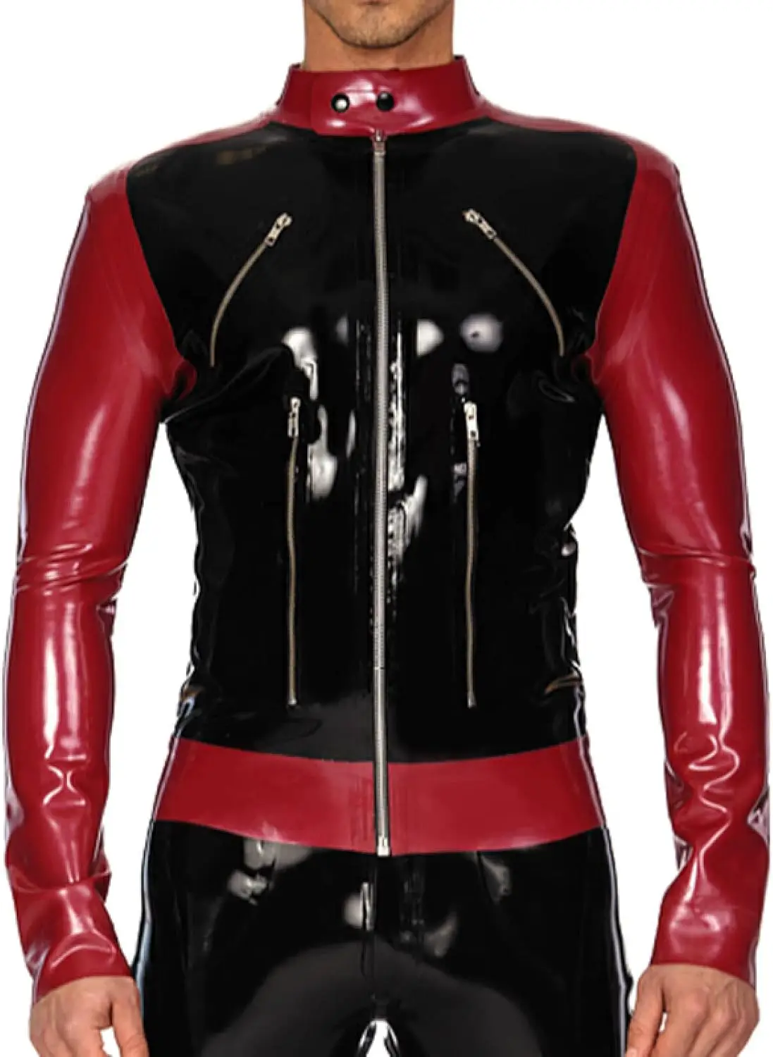Latex Jacket with Zippers Buttons At Neck Rubber Coat Top Clothes