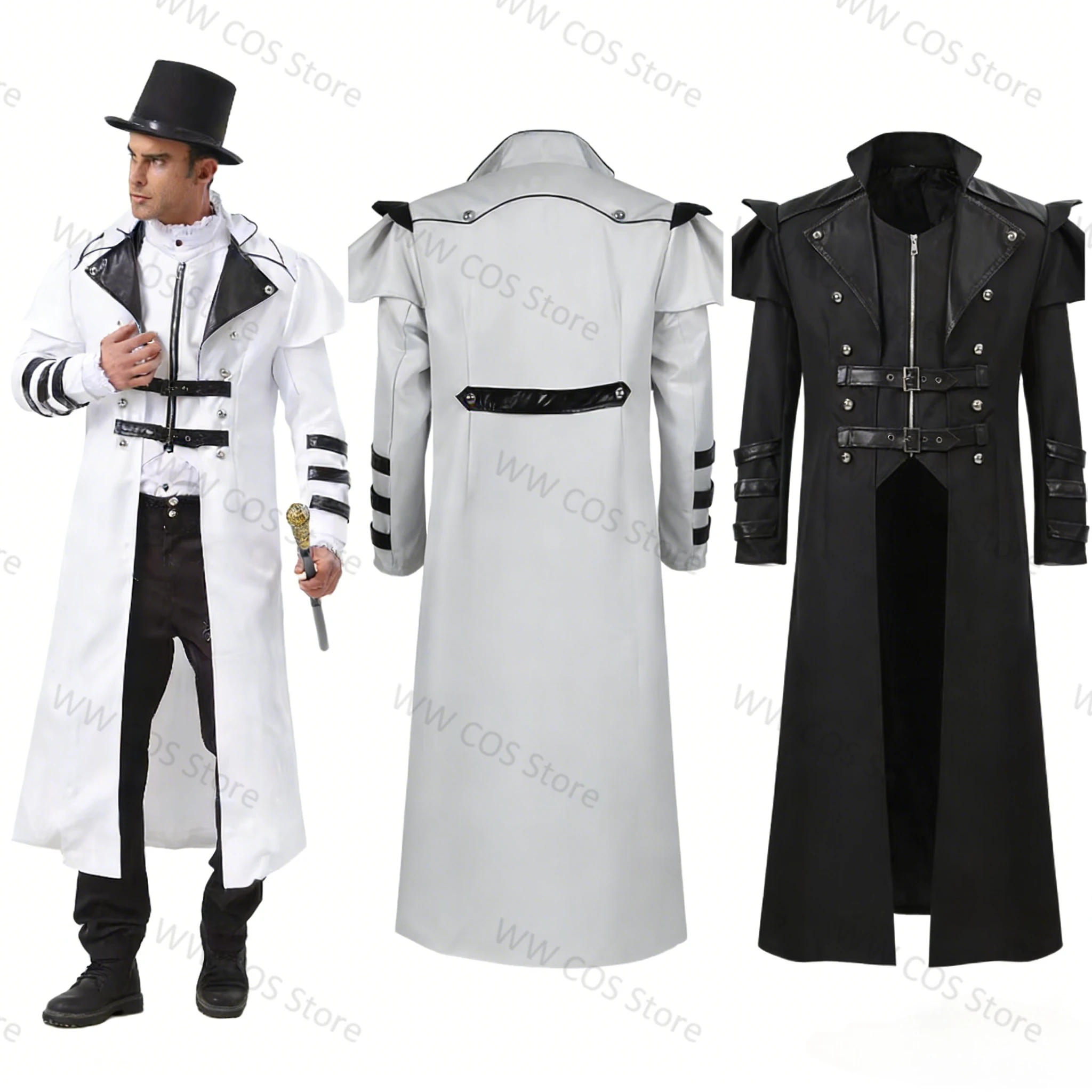 Men MedievalTrench Long Coats Warden Cosplay Costume Gothic Button Zipper Long Coat Stage Performance Costume, Plus Size 2026