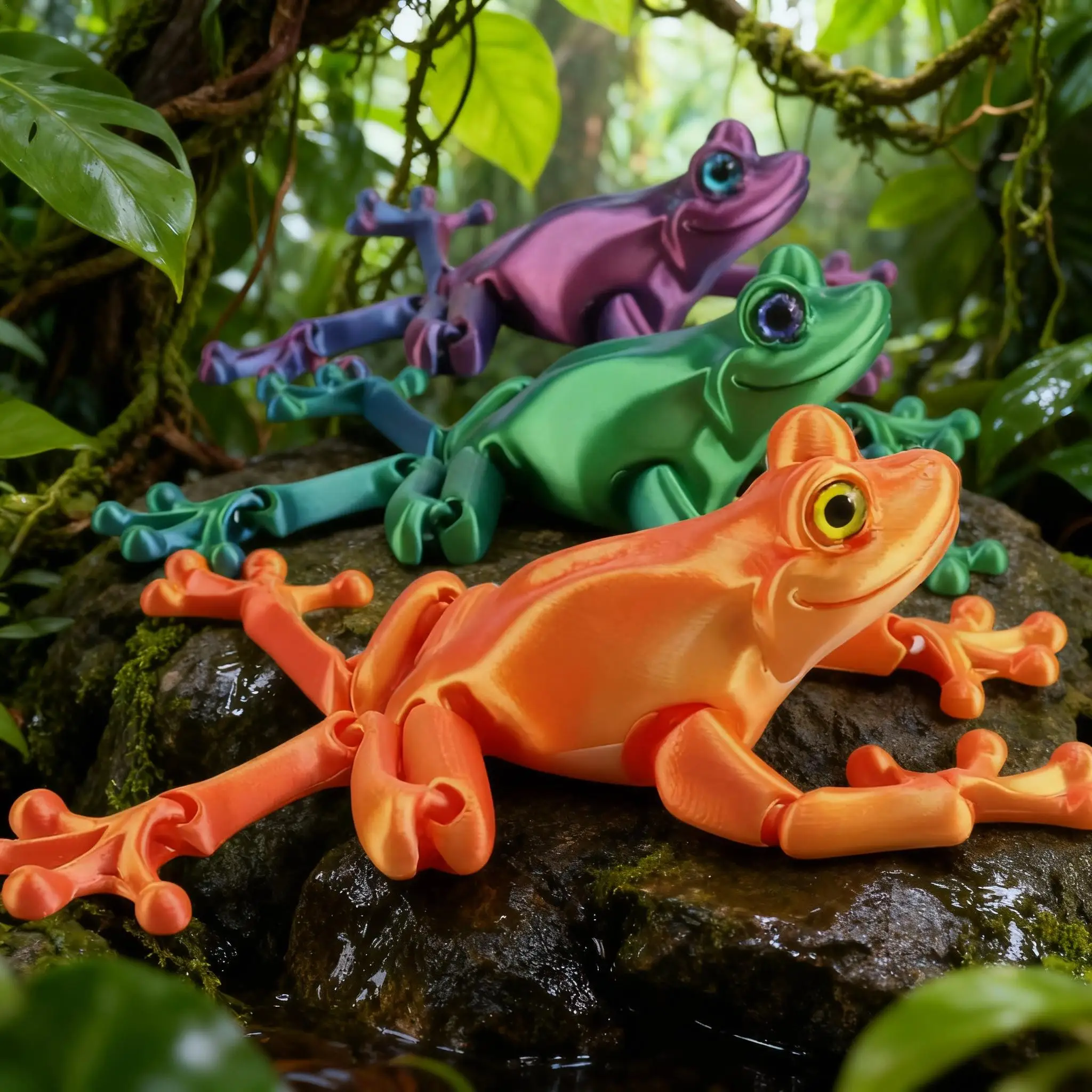 3D Printed Cute Frog Model Multi-joint Movable With Glittering Eyes Simulated Animals Model For Room Decor Accessories Kids Gift