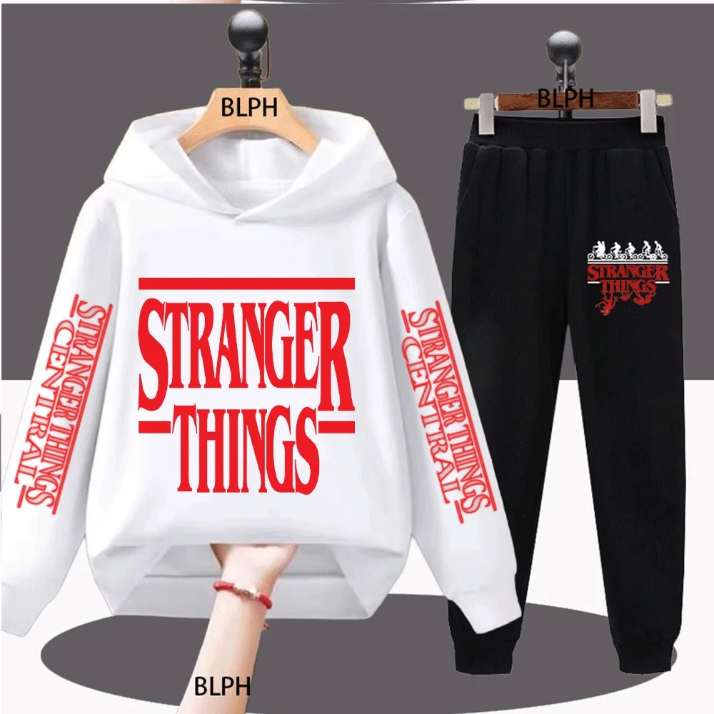 Stylish Stranger Things Kids Hoodie Set, Classic Red Logo Pullover Sweatshirt and Pants for Boys/Girls, Trendy Casual Outfit for