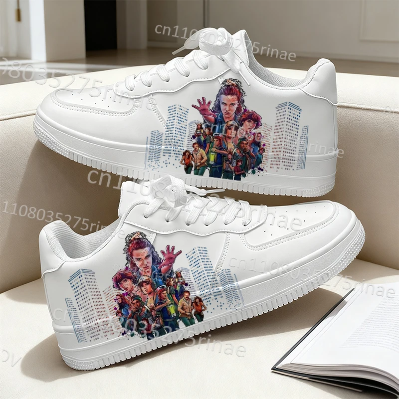 New Hot Selling breathable Strangered Things Children Adult White Shoes man woman Lace up White Sneakers boys girls gift