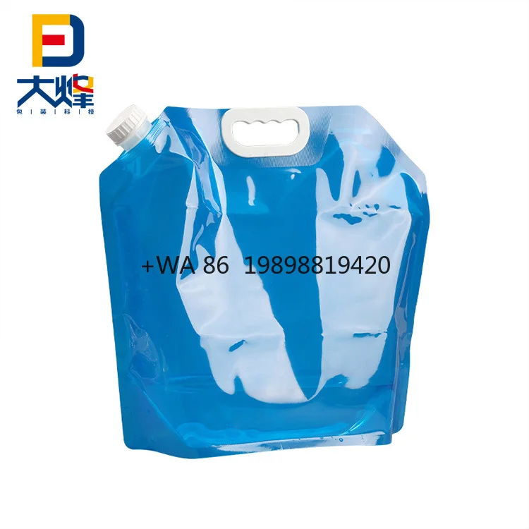 Handle Water Bag Custom Outdoor Transparent 1L 2L 3L 4L 5L Juice Beer Drink Liquid Spout Pouch Portable Folding Plastic