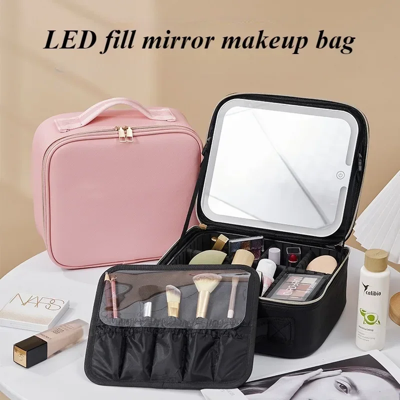 LED Mirror Makeup Bag Home Detachable Partition Portable Storage Bag Large Capacity Portable and High-end Travel Bag