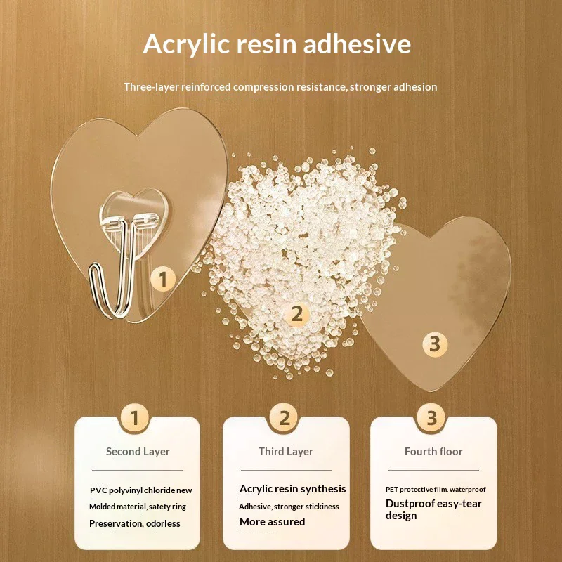 10 pcs Heart Shape Hooks Non Punching Plastic Love Hangers Holder Self Adhesive Key Towel Multi-Purpose Hooks Storage Rack
