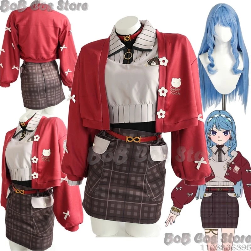 Hoshimachi Suisei Virtual YouTuber Anime Game Hololive Cosplay Costume Red Coat Mini Skirt Blue Wig Woman Dress Halloween Party