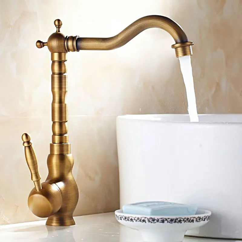 Monite Antique Brass Rotating Kitchen Faucet Deck Mounted Solid Brass Vessel Basin Sink Faucet Mixer Tap Retro Chrome Mixer Tap