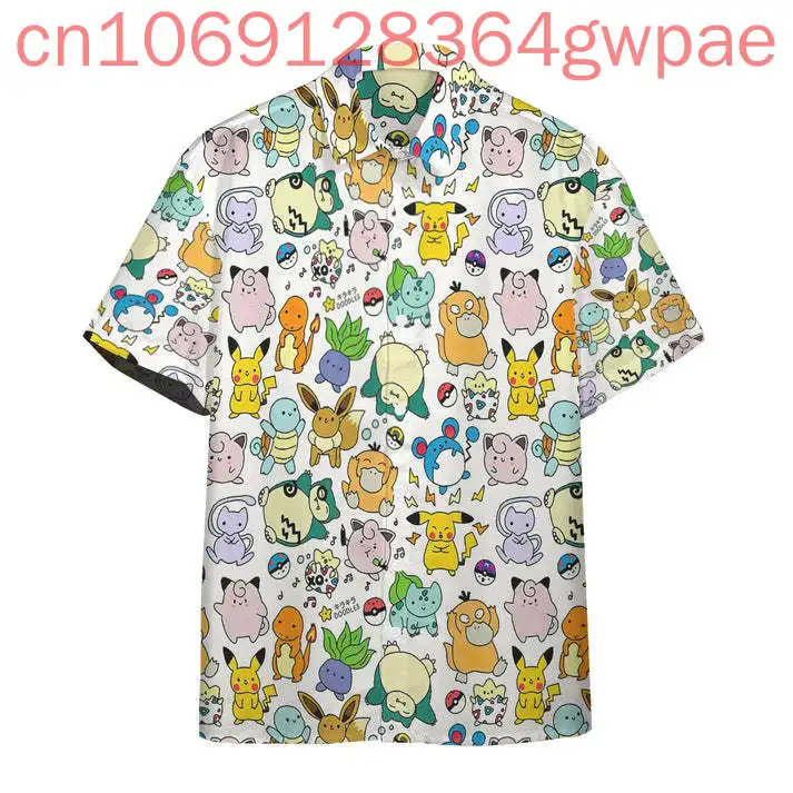 New Pokemon Pikachu Cute Pattern Custom Men and Women Hawaiian Summer Kids Button Fashion and Leisure Shirt