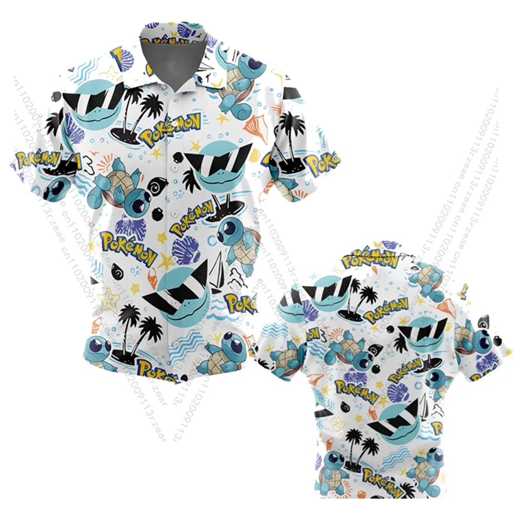 Pokemon Squirtle Squad Anime Hot Summer Hawaii Beach Shirt Men's Y2K Cosplay Harajuku Print Kids Fashion Casual Trends Shirt