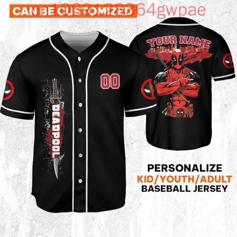 Personalize Deadpool Blodd Jersey Men and Women Baseball Jersey Marvel Summer Kids Cool Casual Baseball Top