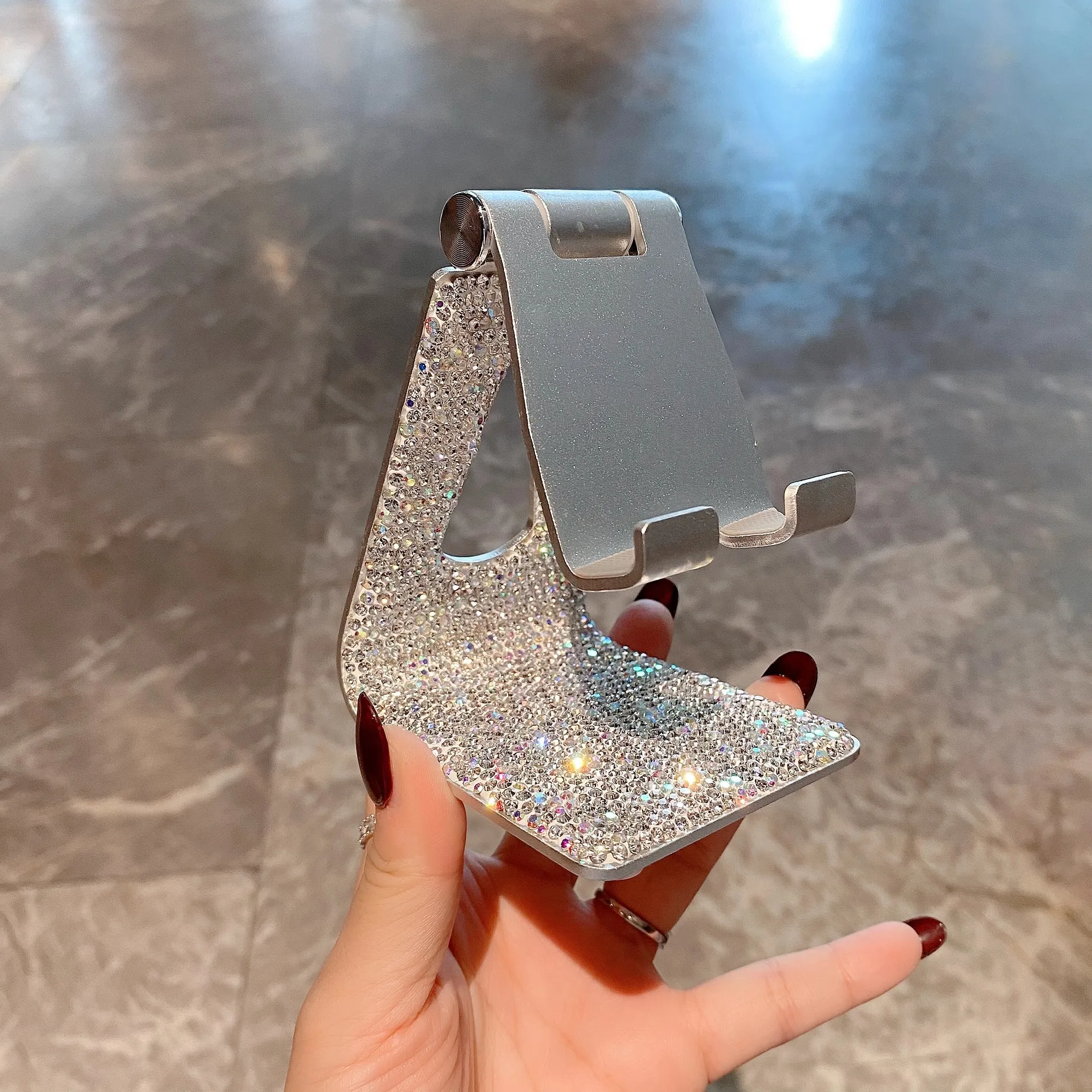 Bling Rhinestone Mobile Phone Holder Foldable Cell Phone Holder for IPhone Phone Metal Stand Desk Live Office Learn Tool