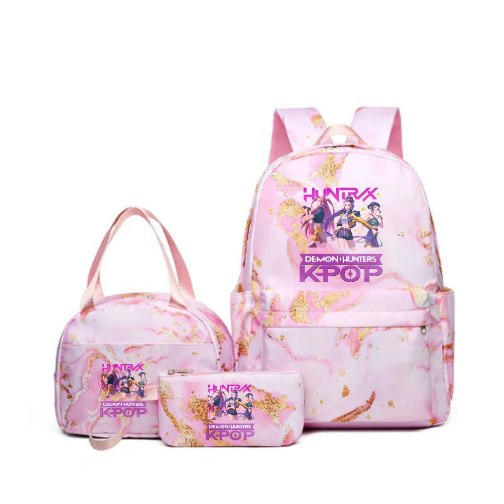 Korean Wave Devil Hunter Student Set Backpack, Pencil Case, Lunch Bag Trio Trendy Lunch Bag & School Bag The Perfect Gift Choice