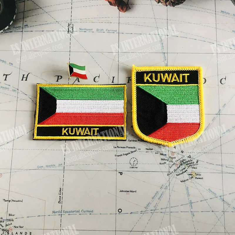 KUWAIT National Flag Embroidery Patches Badge Shield And Square Shape Pin One Set On The Cloth Armband Backpack Decoration