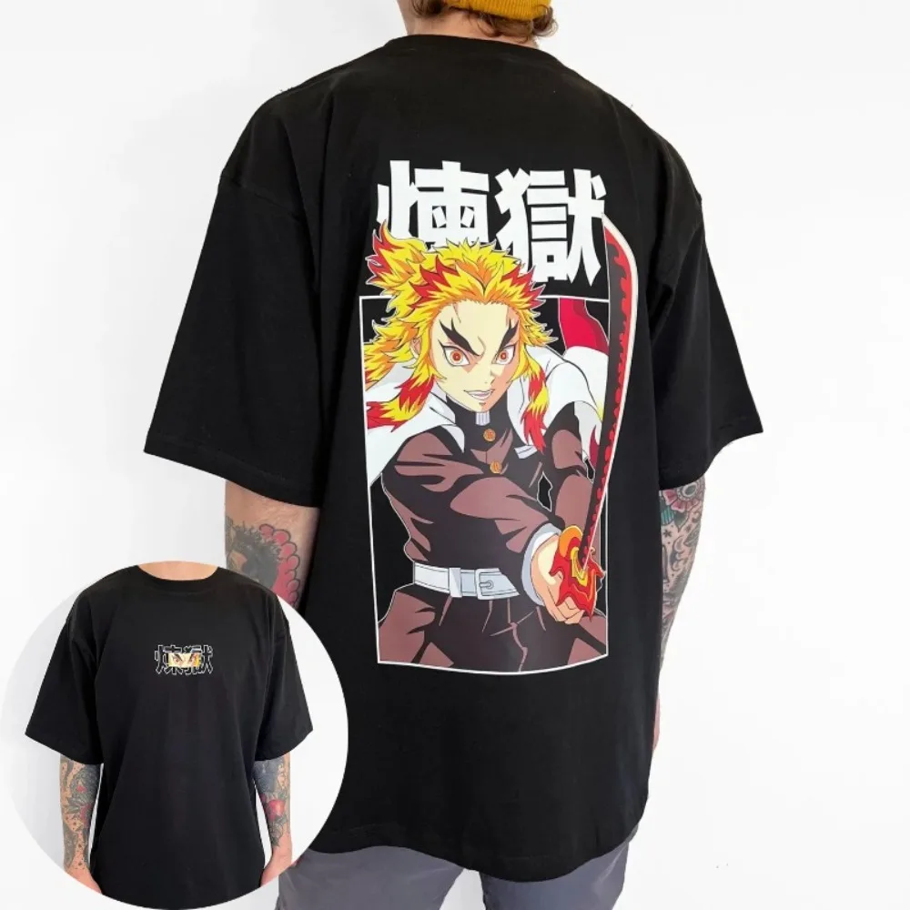 Demon Slayer Rengoku Kyojuro Anime T Shirt Men Women Cotton Short Sleeve Tops Summer Casual Graphic Tee Streetwear Manga Cosplay