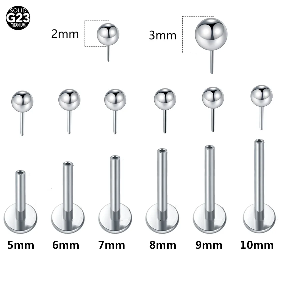 1/10pcs Titanium Push-in Balls Labret Piercing Lip Ring 20G 18G 16G Threadless Cartilage Helix Earring Body Jewelry