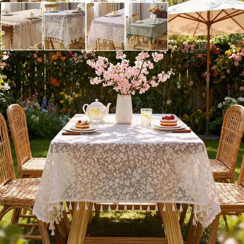 Table Cloth White Table Cover American Linen Cotton Table Juppe Tablecloth flower Fabric Nordic Tv Cabinet Lace Pattern Modern